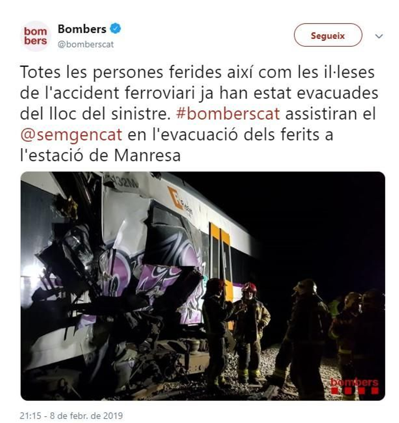 A més, els bombers han anunciat que totes les persones ferides així com les il·leses ja han estat evacuades del lloc del sinistre.