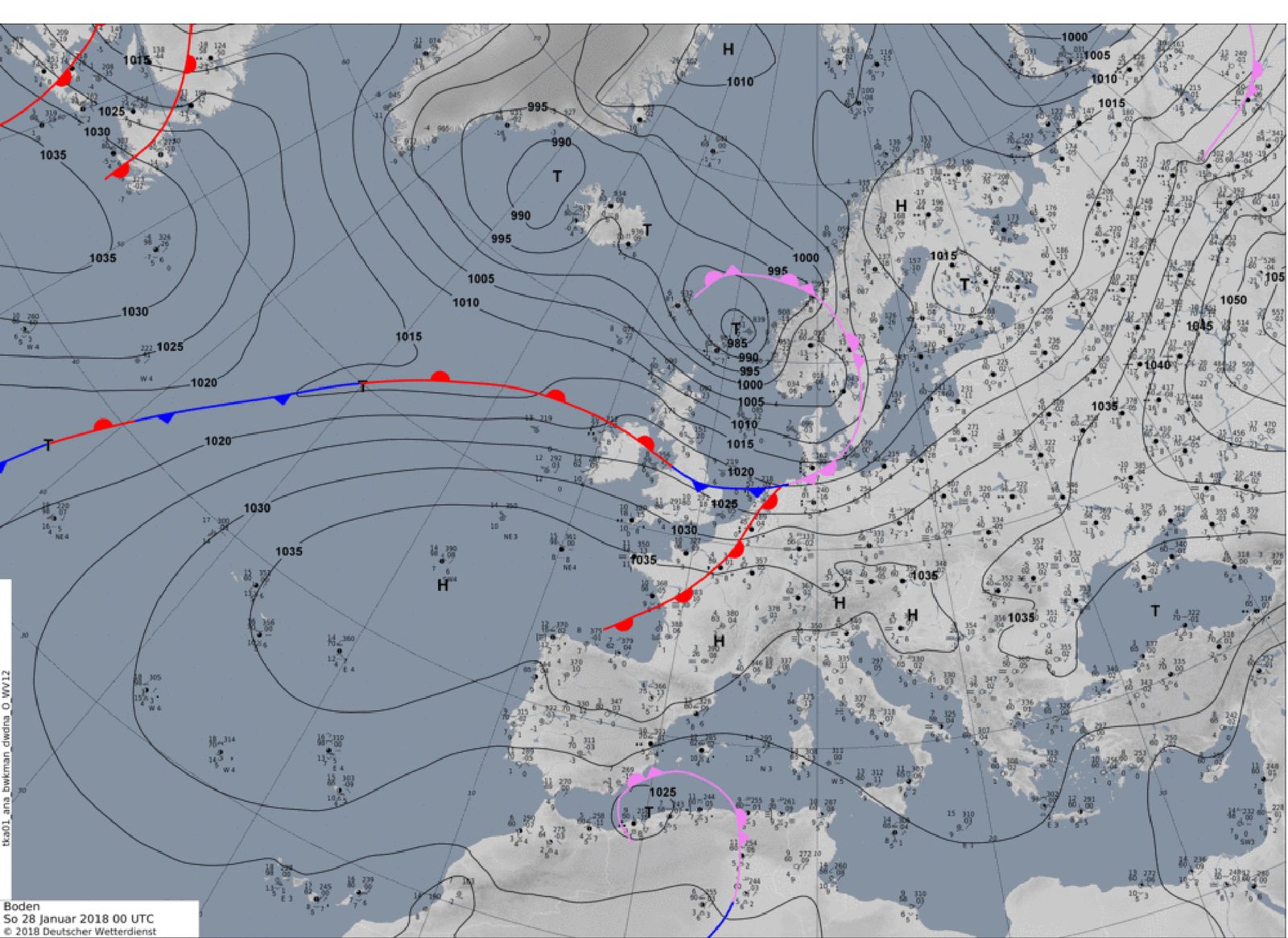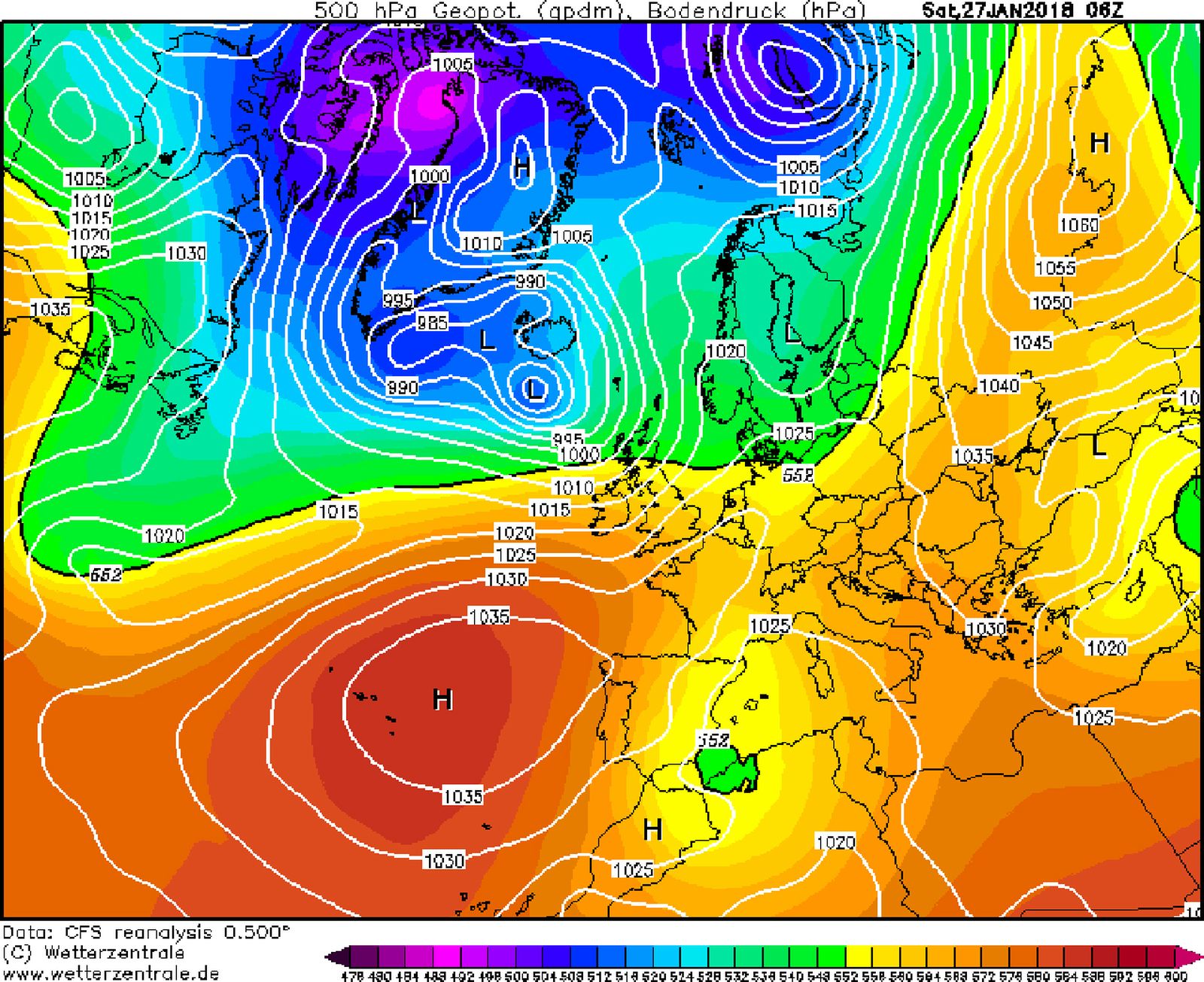 Mapa isobàric superfície 28 gener 00Z Mapa 500 mb 27 gener 2018 06Z