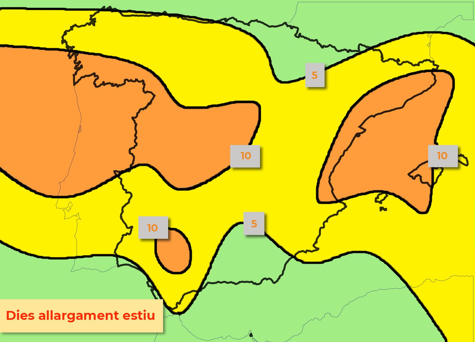 Aquest allargament de l'estiu és general a tot Espanya, i provoca que s'amplifique l'efecte de l'illa de calor urbana.