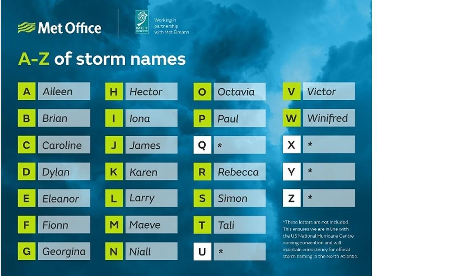 Des del 2015 el Centre Meteorològic Britànic (Met Office) i l'Irlandés estan coordinats per a donar nom a les borrasques que es considere que poden ser molt profundes i causar danys o problemes considerables a la població.