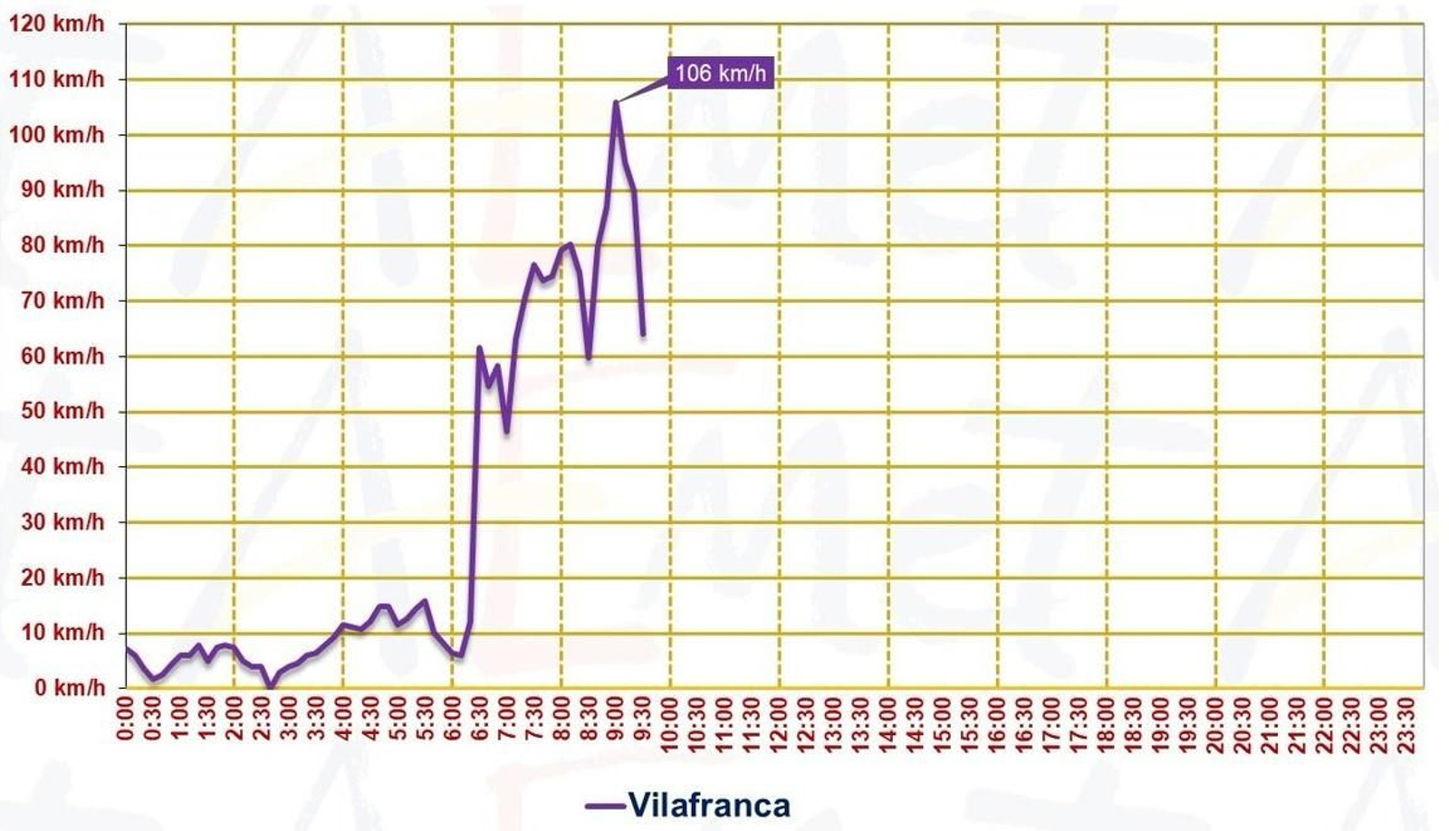 Ratxes màximes registrades hui a l'observatori de Vilafranca / Aemet