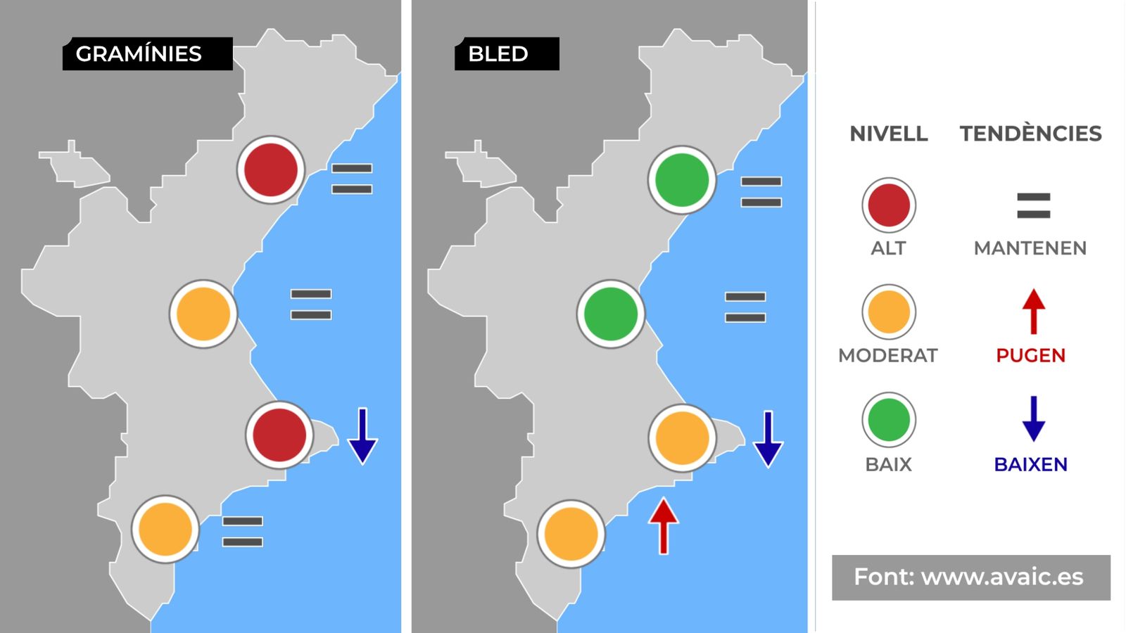L'Associació Valenciana d'Al·lergologia i Immunologia Clínica (Avaic) fa un seguiment detallat de la concentració dels diferents tipus de pol·len que poden afectar la població.