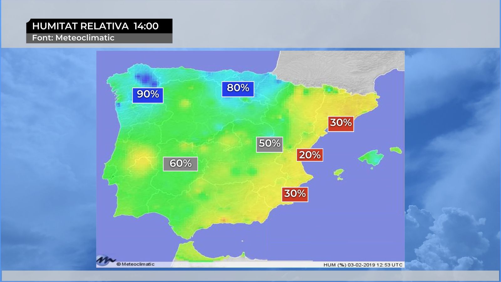 Dies com ara, diumenge 3 de febrer, el canvi d'humitat d'una banda de la Península a l'altra és molt destacable.