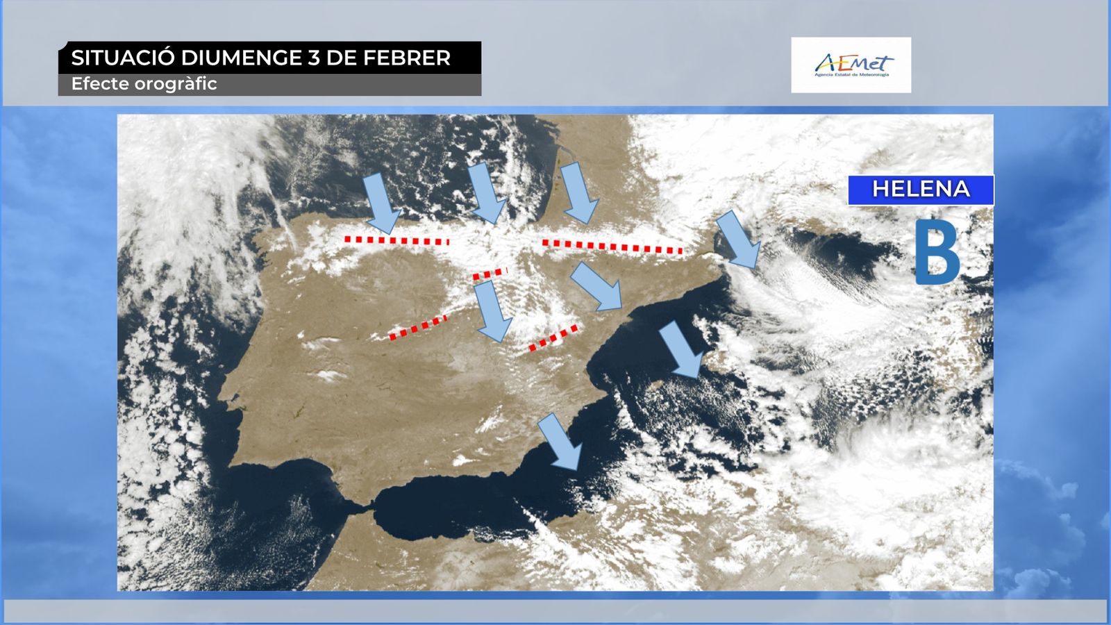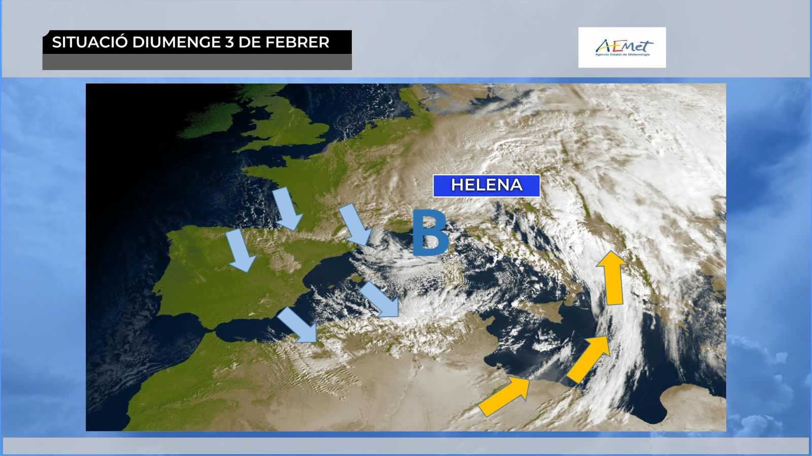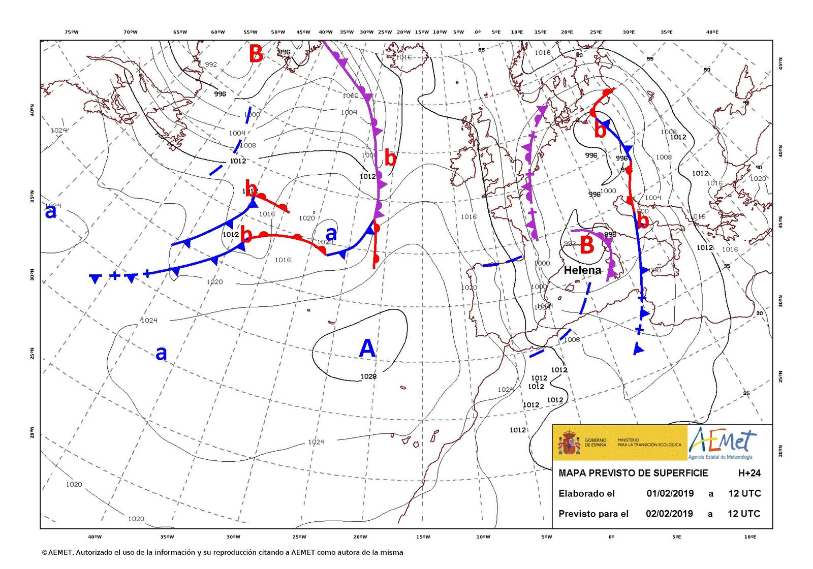 La borrasca Helena ens deixa, i ara s'acosta a nosaltres el centre d'altres pressions de la zona de les Açores, això farà que la variació espacial de la pressió atmosfèrica siga molt baixa a tota la Península i, per tant, el vent bufarà fluix o estarà encalmat.