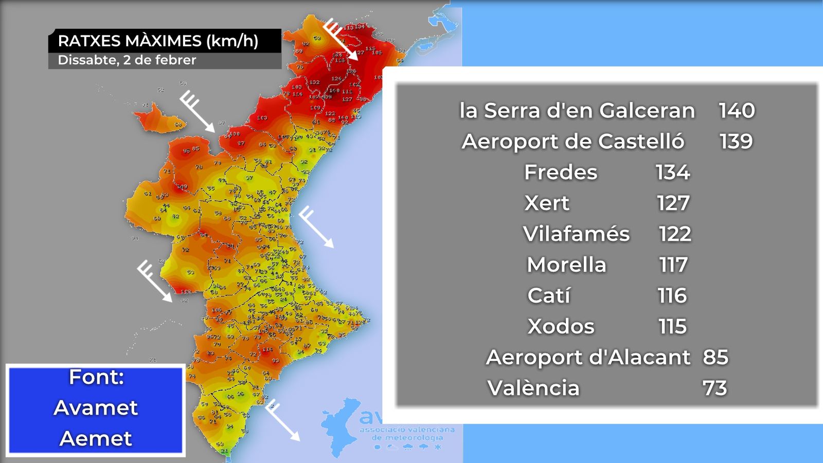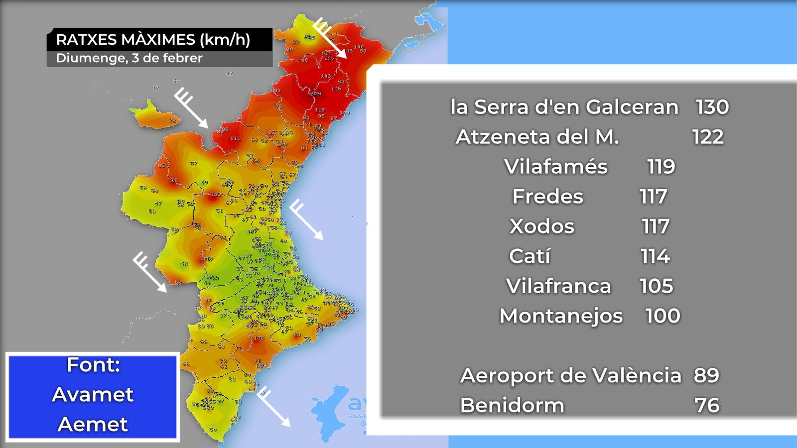 Aquest primer cap de setmana de febrer hem tingut un episodi de vent molt fort, amb ratxes màximes que han superat en molts observatoris els 100 km/h.