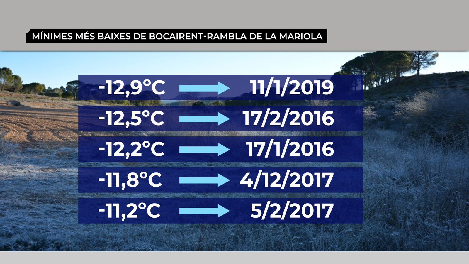 Com podeu comprovar, una de les estacions meteorològiques que registra unes mínimes més destacades és la que hi ha a la rambla de Mariola, al terme de Bocairent. Quines característiques geogràfiques identifiquen aquesta zona? Quines són les dades més extremes d’aquesta estació meteorològica? Com es va descobrir aquest paratge?
