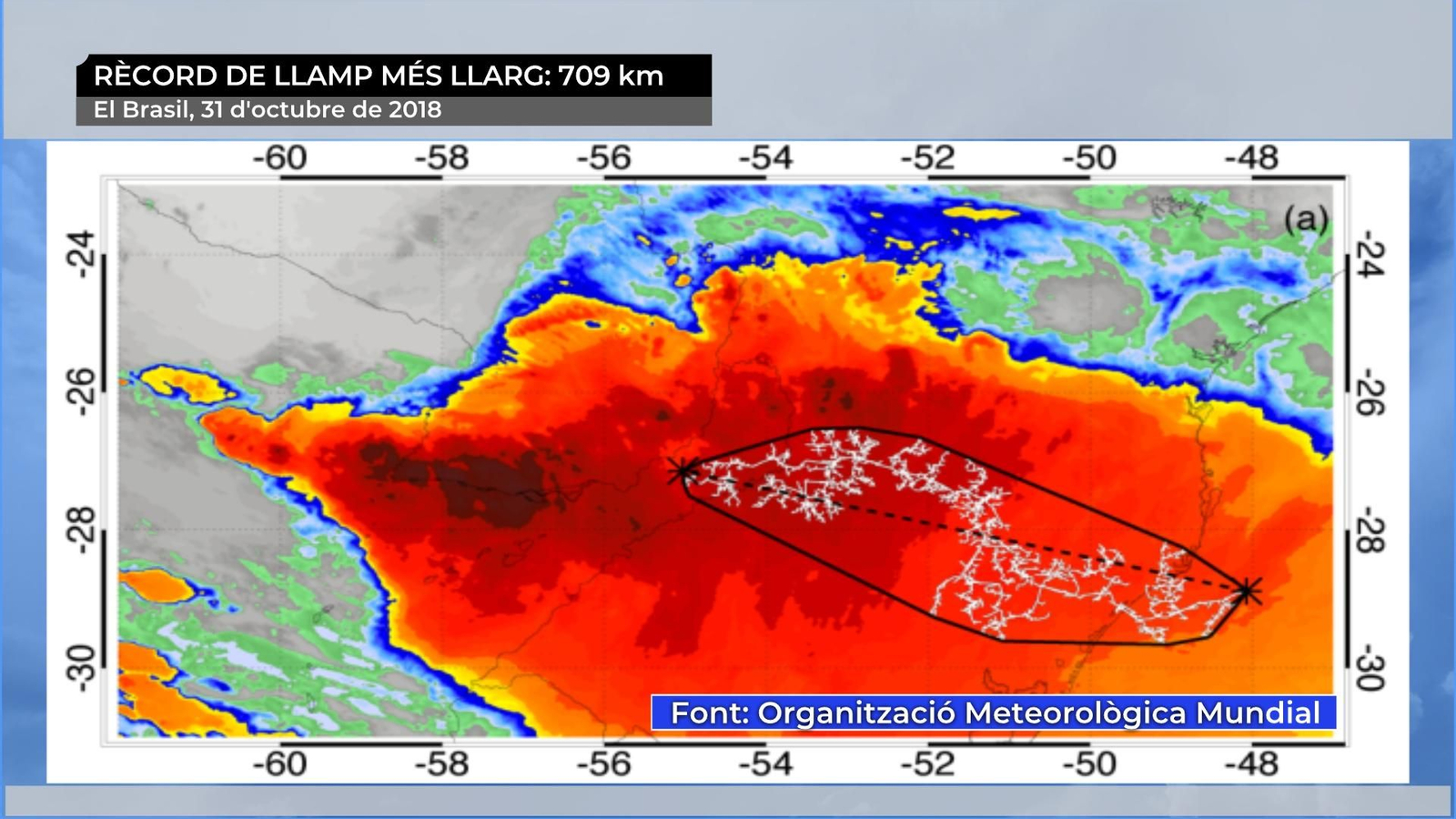 El nou rècord de llamp més llarg ha cobert una distància horitzontal de 709 quilòmetres, amb un error de 8 quilòmetres, distància similar a la que separa Alacant i Astúries. Cal imaginar la gran dimensió i l'energia en el sistema de tempestes que van generar aquest llamp.