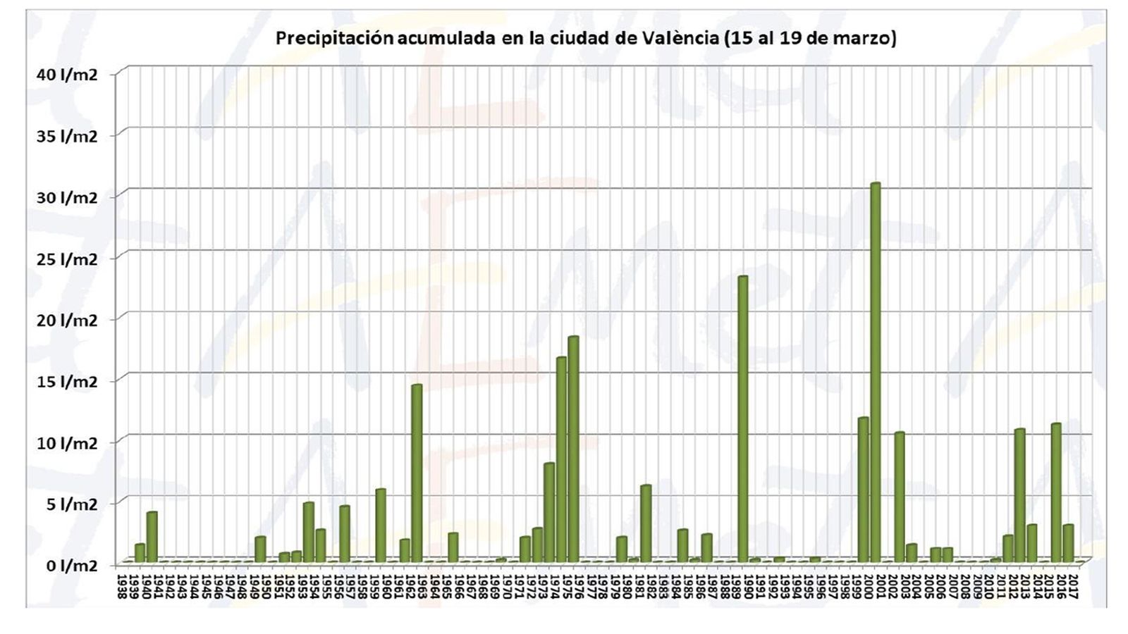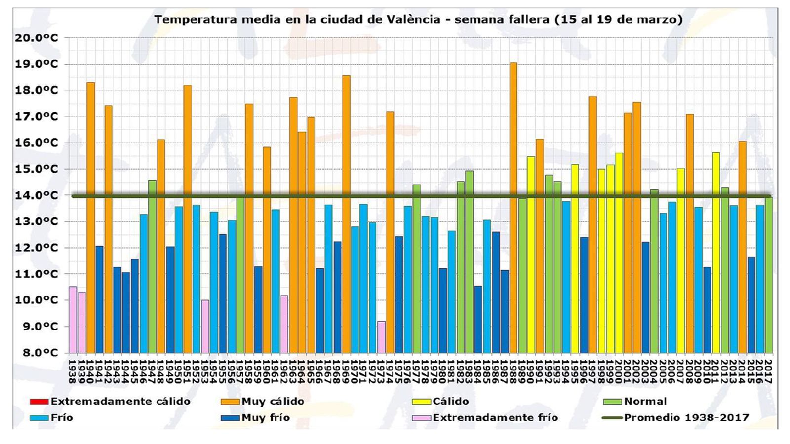 L'estudi del cap de Climatologia de la delegació d'Aemet a València, José Ángel Núñez, compta amb les dades registrades a la ciutat des de 1938 i permet descriure el clima de la setmana fallera a València.