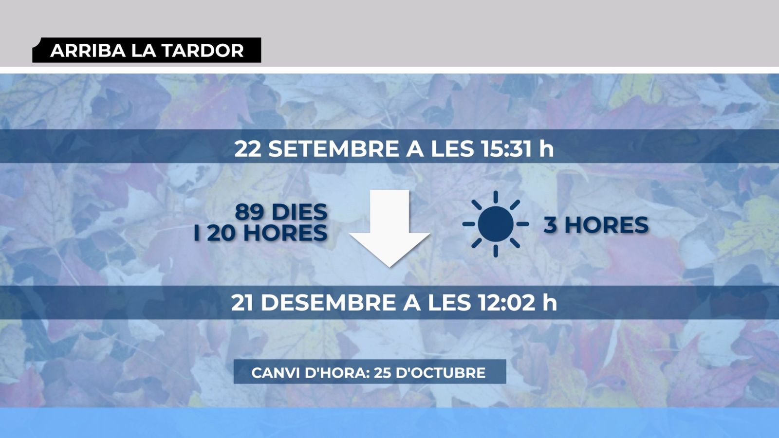 Entre hui i el 21 de desembre estarem immersos en la tardor astronòmica. Enguany la durada serà de 89 dies i 20 hores, i suposarà la transició fins als dies més curts de l'any. Des de hui fins al solstici d'hivern perdrem quasi tres hores de sol, en concret 166 minuts.