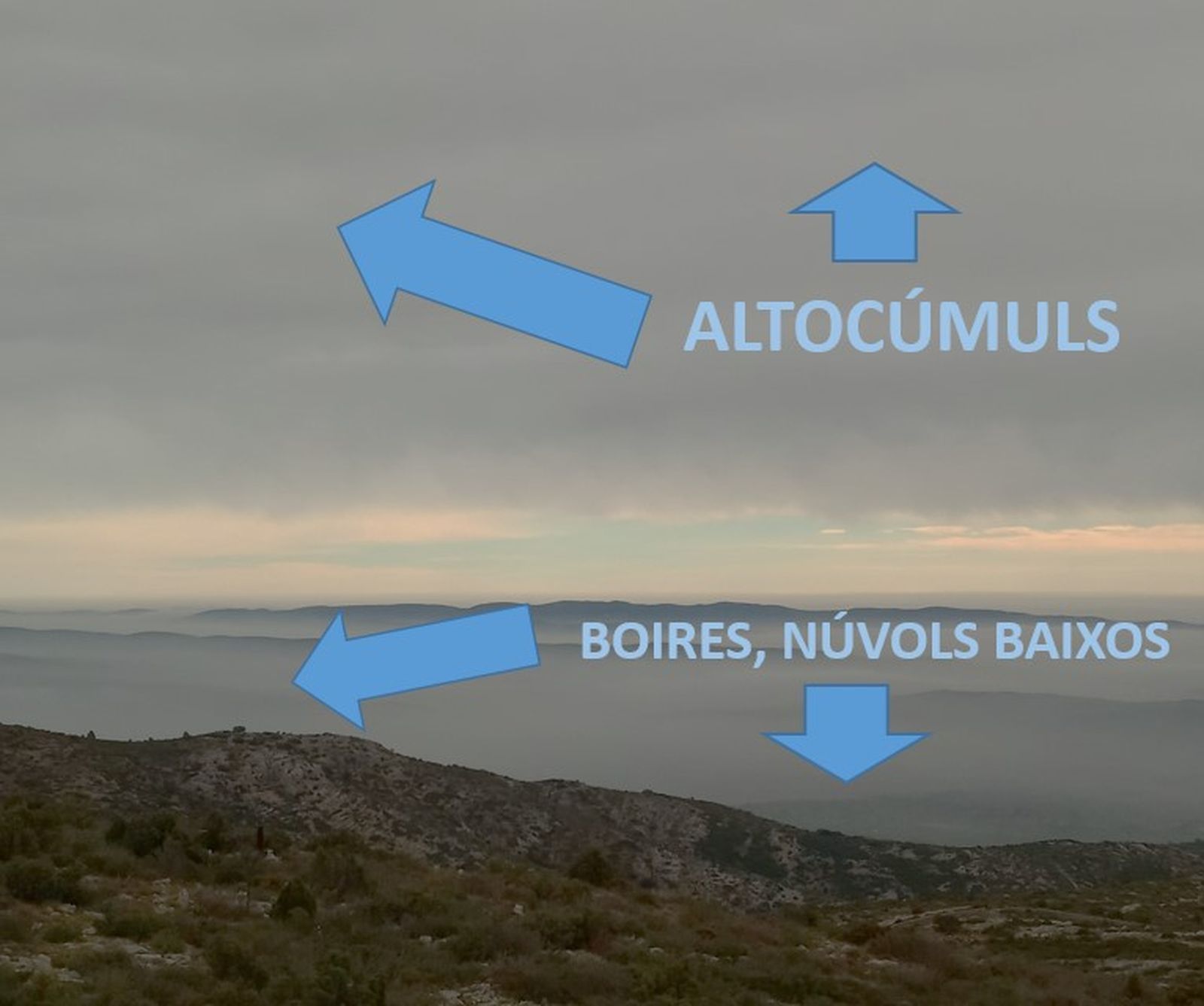 D'un banda d'han format de matí boires i estrats baixos, i de l'altra s'han format núvols mitjans i alts, com podem veure a la foto de la Serratella, de Miguel Zaragoza.