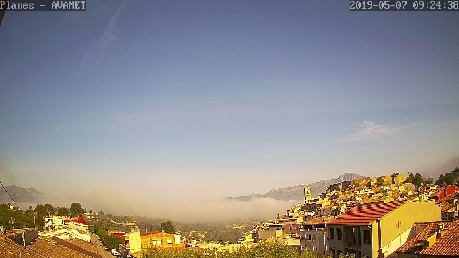Aquest matí, 7 de maig de 2019, s'ha pogut veure un arc de boira a la webcam de l'Associació Valenciana de Meteorologia (Avamet) situada a Planes, al Comtat.