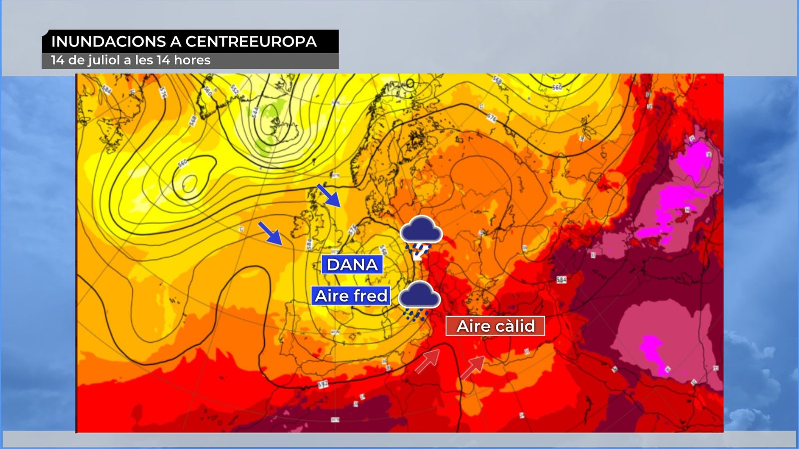 La interacció d'una DANA, és a dir, un embossament d'aire fred en altura, amb l'arribada d'una massa d'aire subtropical procedent del sud, ha sigut el detonant d'una situació poc típica a Centreeuropa, on el clima sol ser més regular i les pluges més repartides al llarg del temps.