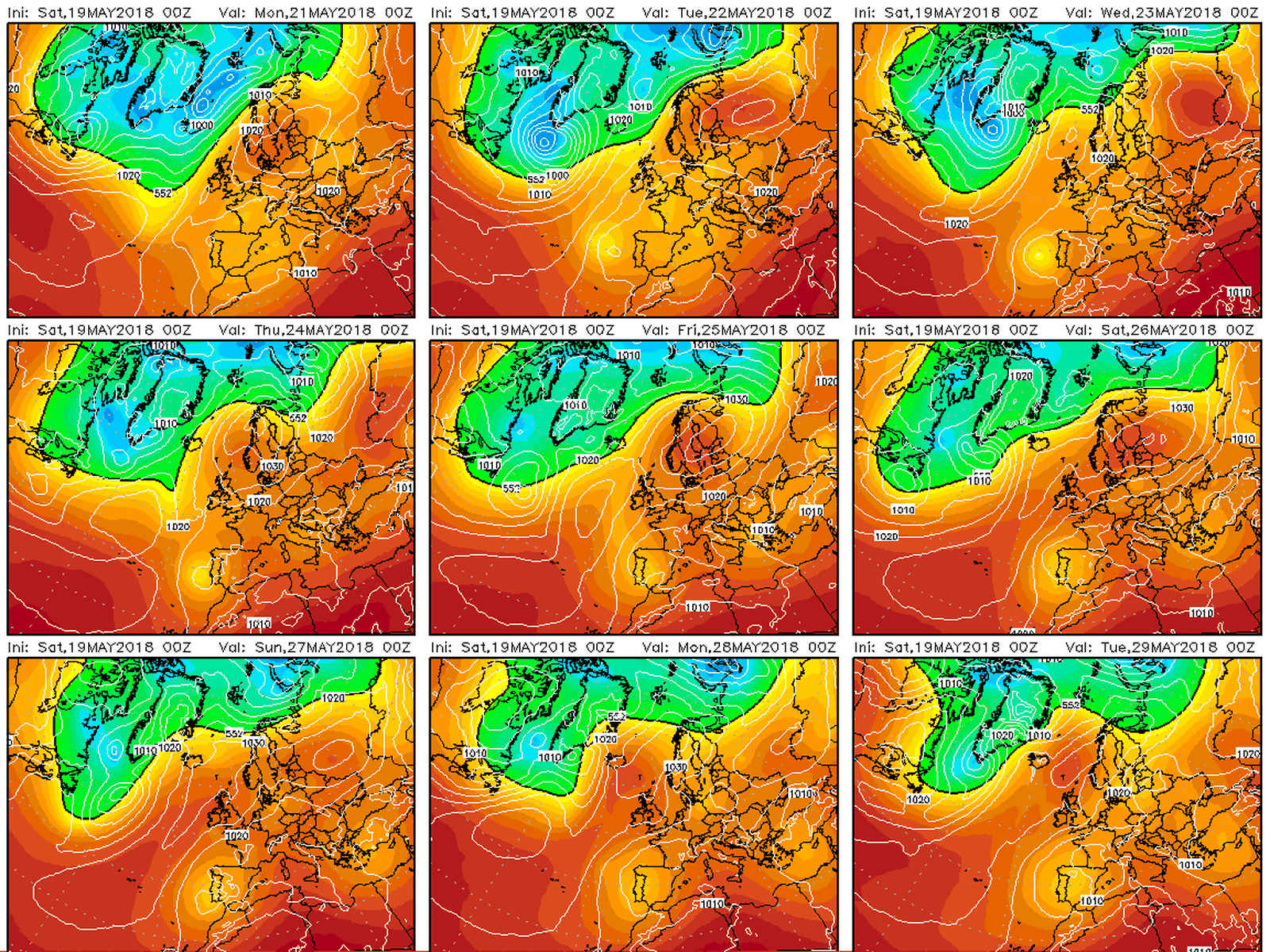 A mitjan setmana el model del centre europeu apunta al domini de l'anticicló i a la remuntada de les temperatures, després d'un maig més fresc de l'habitual. El model americà (GFS) manté una successió de situacions inestables que pot allargar un poc més la possibilitat de tempestes i ajornar la pujada dels termòmetres.
