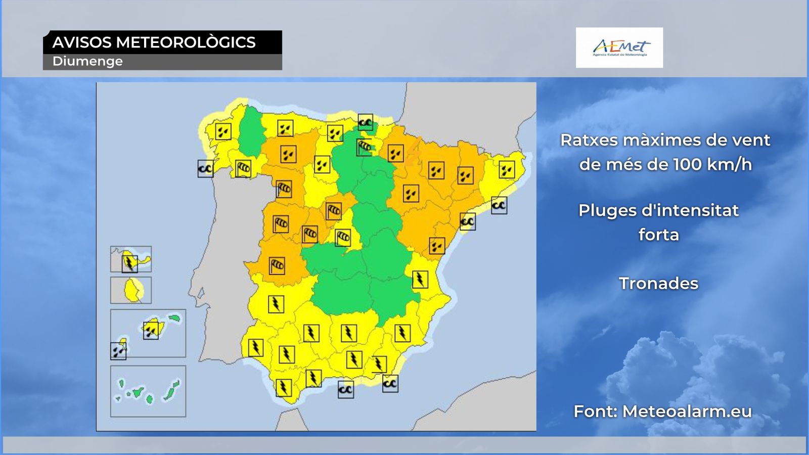 Ací podem veure la situació prevista per a diumenge de matinada i a migdia.
