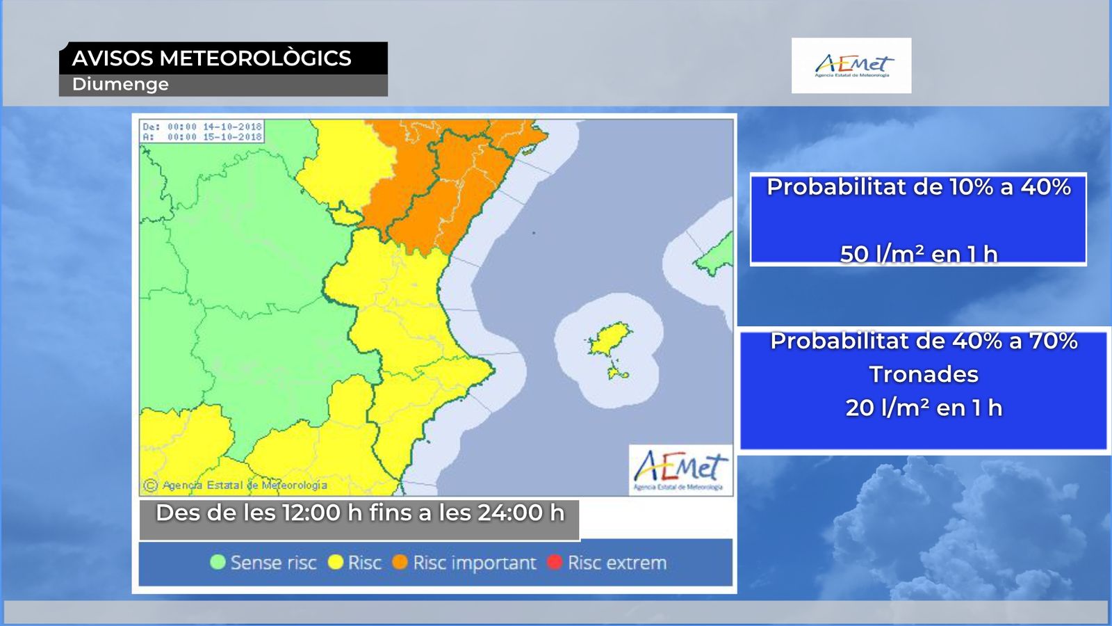 Atenció a les pluges i a les tronades de diumenge de vesprada, que localment seran d'intensitat forta, sobretot a Castelló.