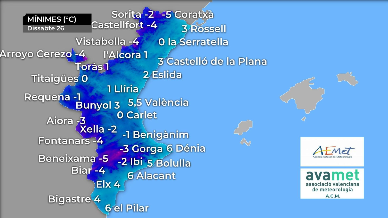 La matinada deixa mínimes de 13 °C negatius a poblacions com Bocairent