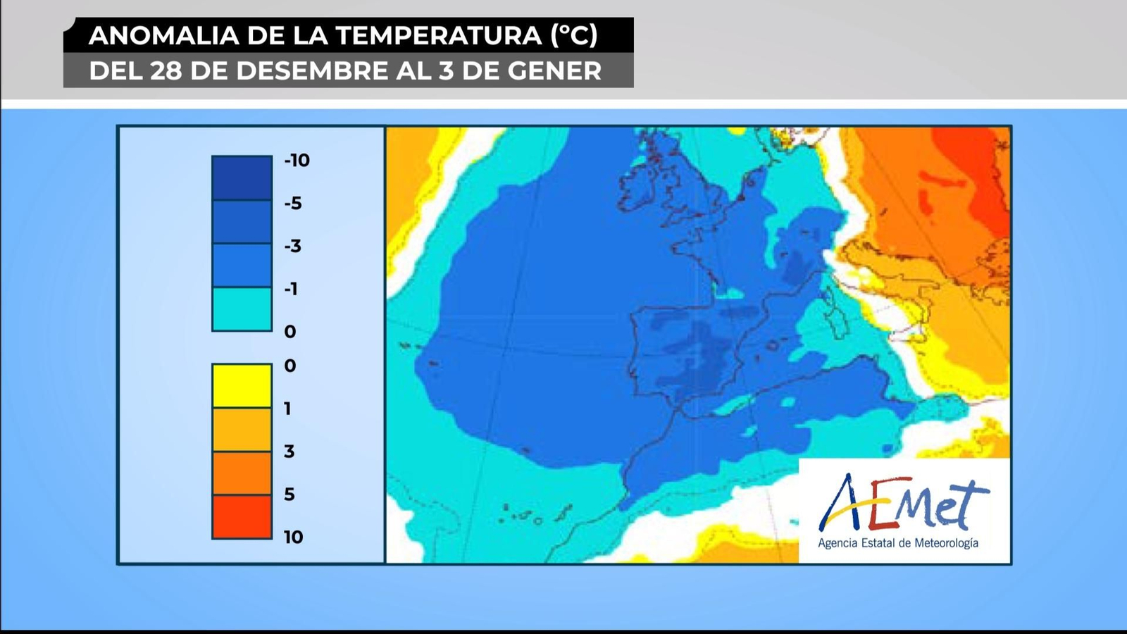 Demà es recupera el termòmetre per a tornar a baixar dilluns. Sembla que 2020 es vol acomiadar amb fred d'hivern, tal com es veu en el mapa de l'anomalia prevista per a la setmana que ve. Només ens toca abrigar-nos!