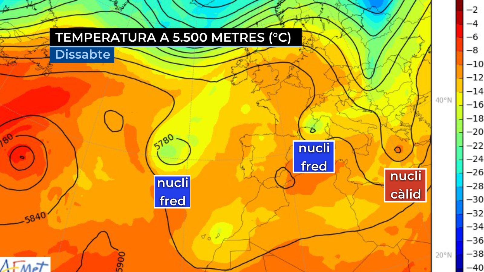 Temperatura a 5.500 metres (ºC) per a dissabte