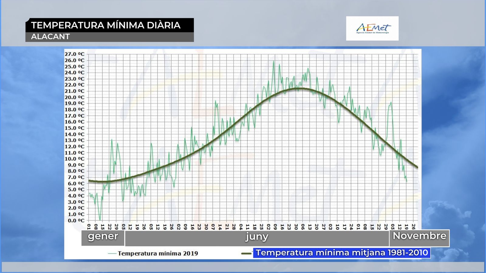 Abans del dia 20 de novembre a l'observatori d'Alacant i al de de València no es registrava una temperatura mínima tan baixa des de l'any 2007.