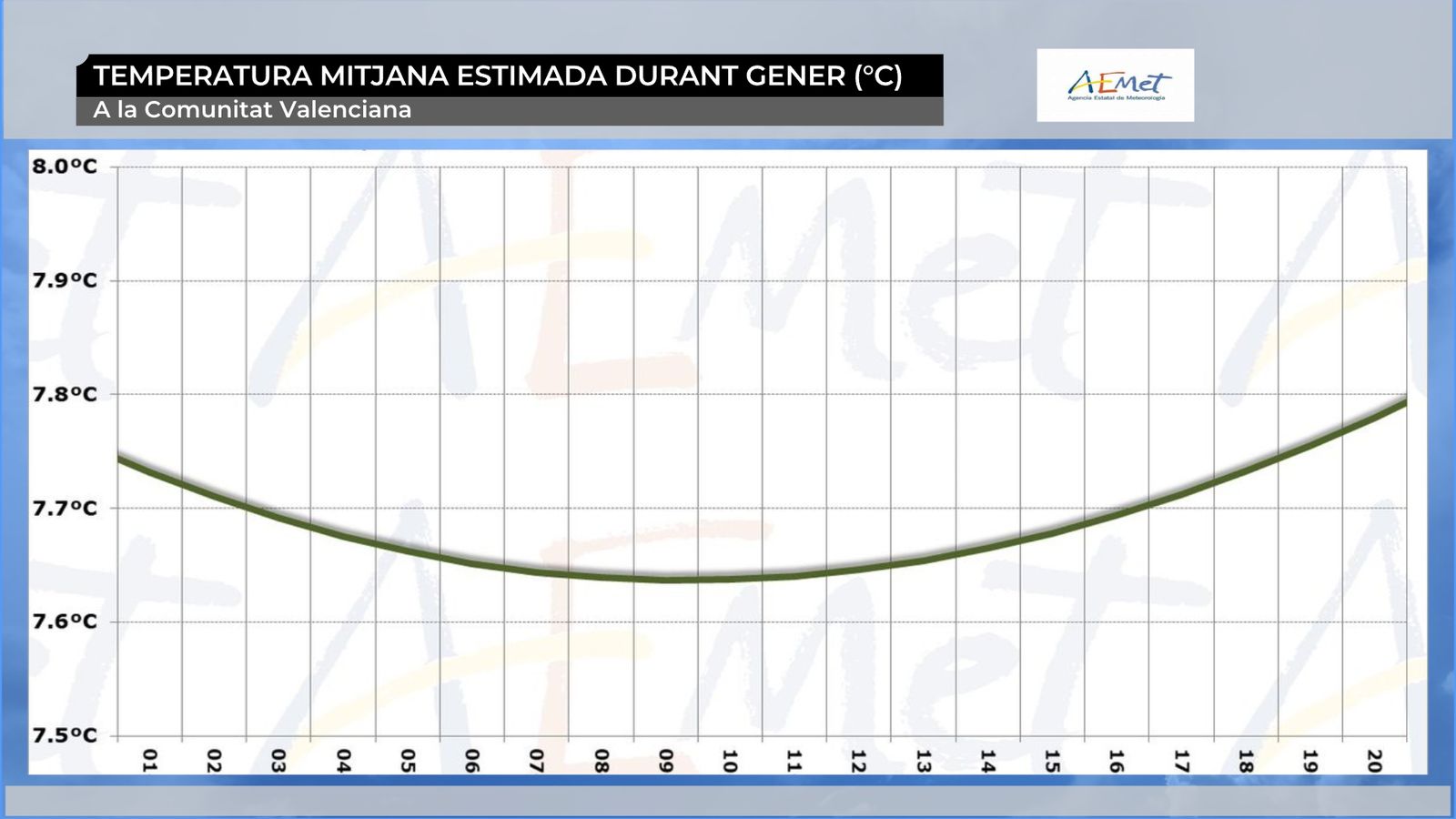 Temperatura mitjana estimada a la Comunitat Valenciana durant el mes de gener.