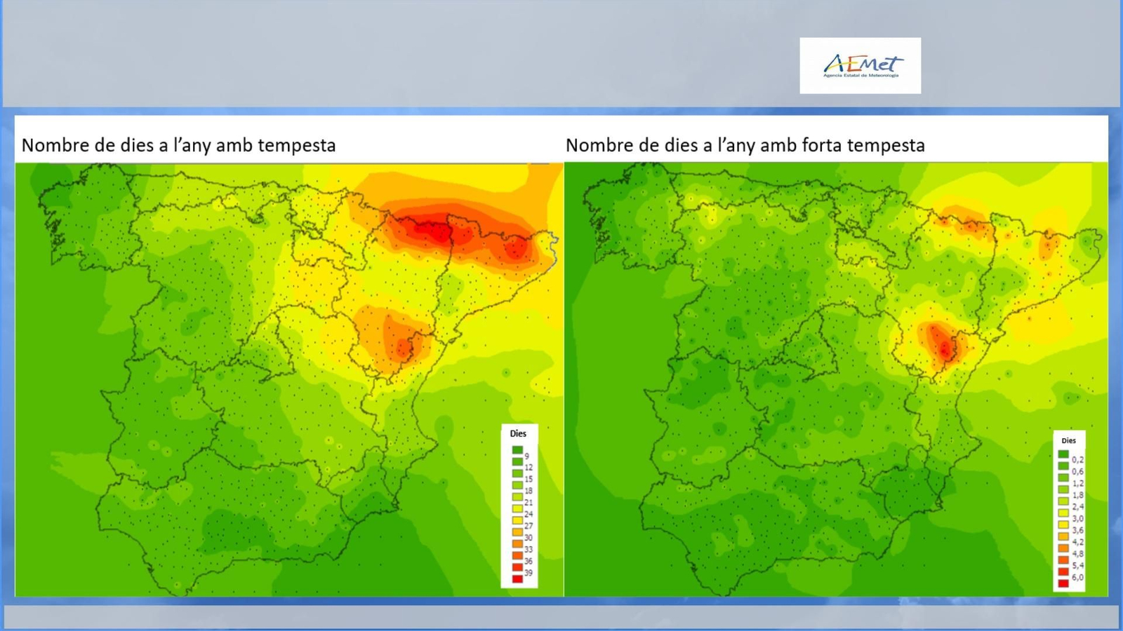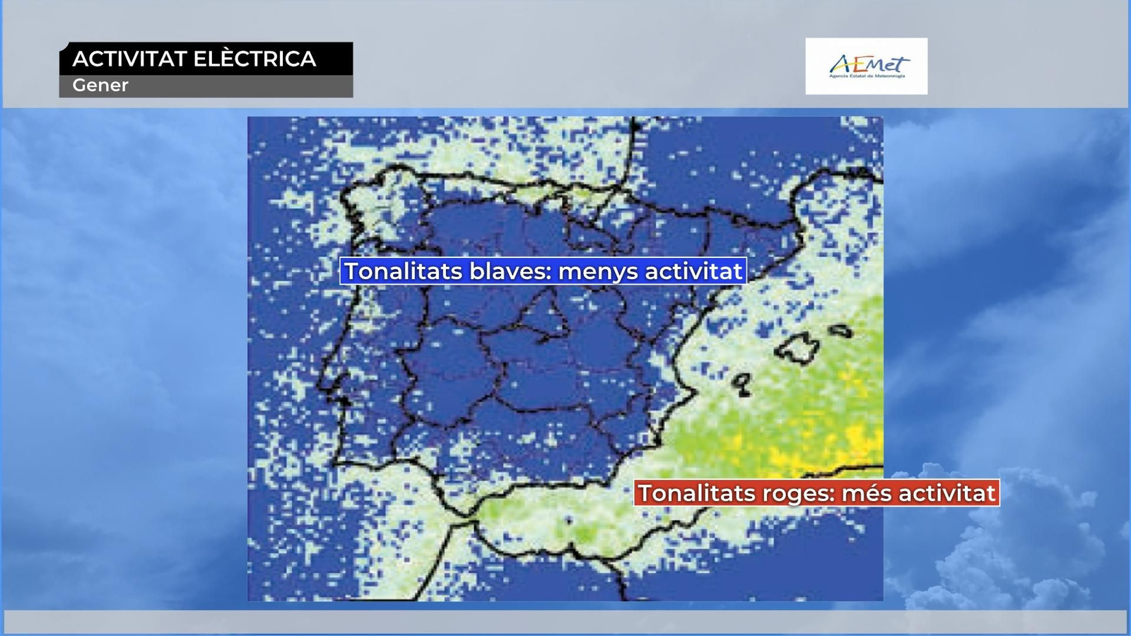 Segons un estudi de Jorge González Márquez sobre la climatologia de les tempestes a Espanya, Alacant es troba entre la mitjana de nombre de tempestes en relació amb la resta de les províncies, València es troba entre els valors mitjans-alts i Castelló entre el grup de territoris amb valors alts. Tot i trobar-se entre la mitjana o per damunt de la mitjana de llamps en relació amb la resta del territori peninsular, a l’hivern en general els valors són baixos a les zones terrestres (màxim 1 dia de llamps al mes) i un poc més elevades a les zones marítimes (amb màxims de 2 dies de llamps al mes a l'hivern). El màxim de dies de tempesta es donen al setembre, tot i que a les muntanyes de l’interior és a l’agost. Cal remarcar també l’hora en què es produeixen, de forma general cap al migdia, a les zones interiors, i al llarg de la vesprada, al litoral, encara que les més matineres són les tempestes que es formen al litoral nord del territori (entre les 5 i les 6 del matí).