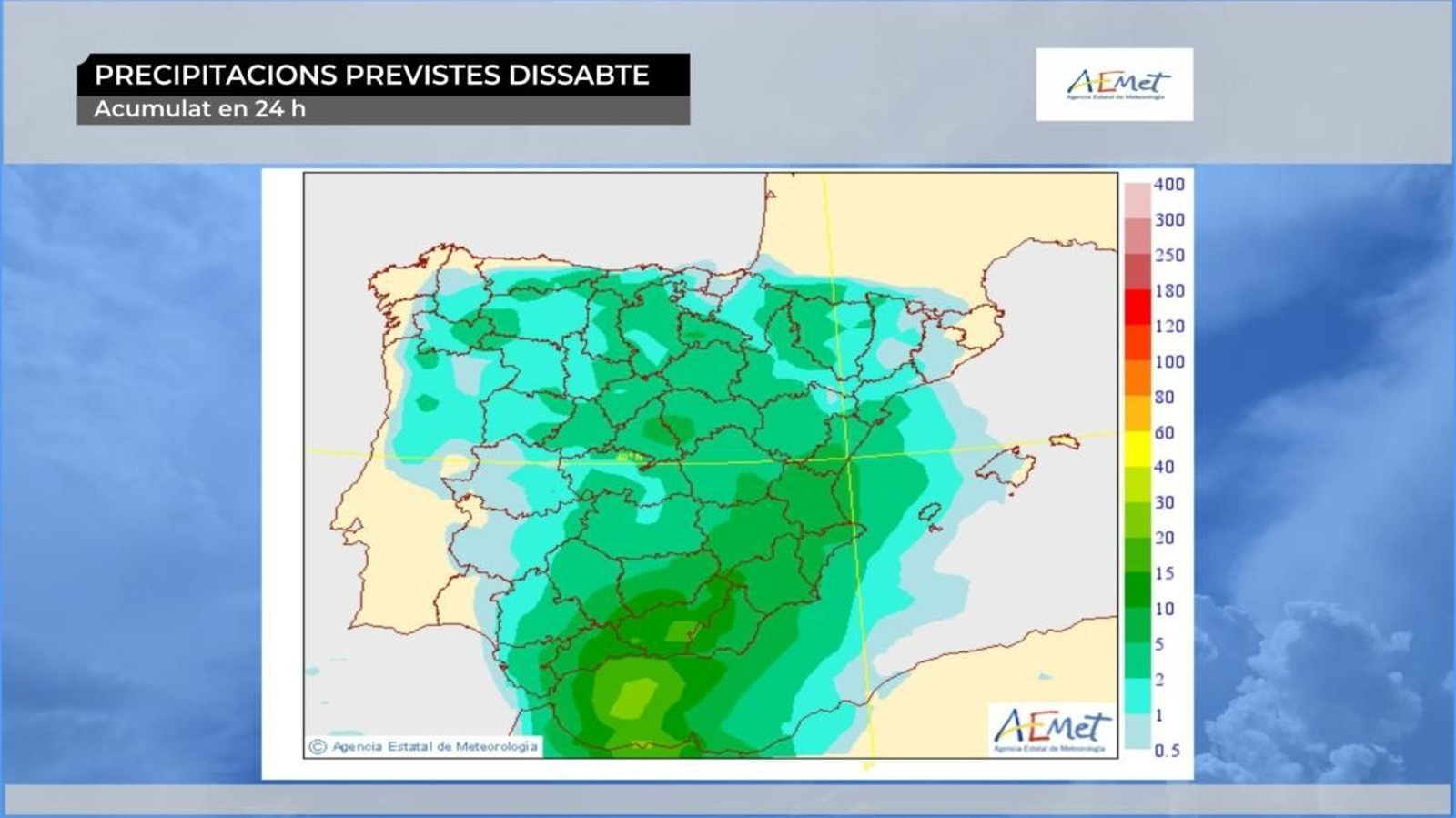 A partir de dissabte, la situació de més o menys pluja i que siga més o menys general dependrà d'on se situe finalment el centre de la bossa d'aire fred i el vent que tindrem en superfície. Tot apunta que dissabte tindrem una banda de precipitació amb ruixats i tempestes localment fortes, que agranarà la Comunitat Valenciana des del sud cap al nord, i que es reactivarà amb el vent de gregal que ens enviarà una borrasca situada cap al sud de les Balears.