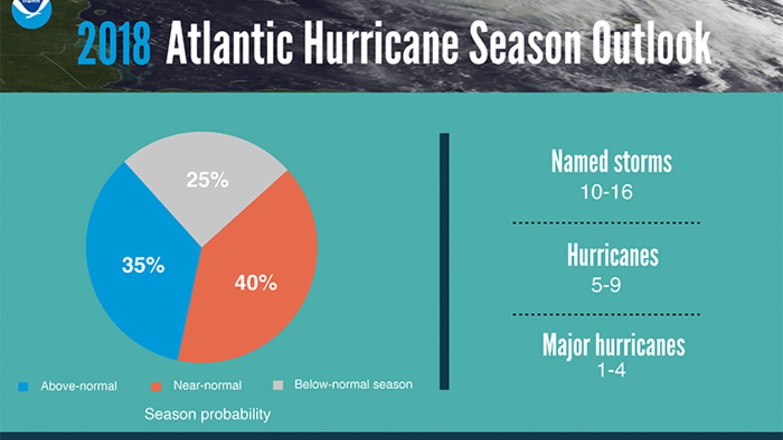 A pesar d'un inici molt atípic, els meteoròlegs de l'Agència Americana de l'Oceà i l'Atmosfera, la NOAA, preveuen una temporada que es podria qualificar de normal quant al nombre d'huracans. Traduït en percentatges, hi ha un 40% de probabilitats que aquesta temporada siga normal, un 35 % de probabilitats que siga una temporada més activa i només un 25 % que ho siga menys.