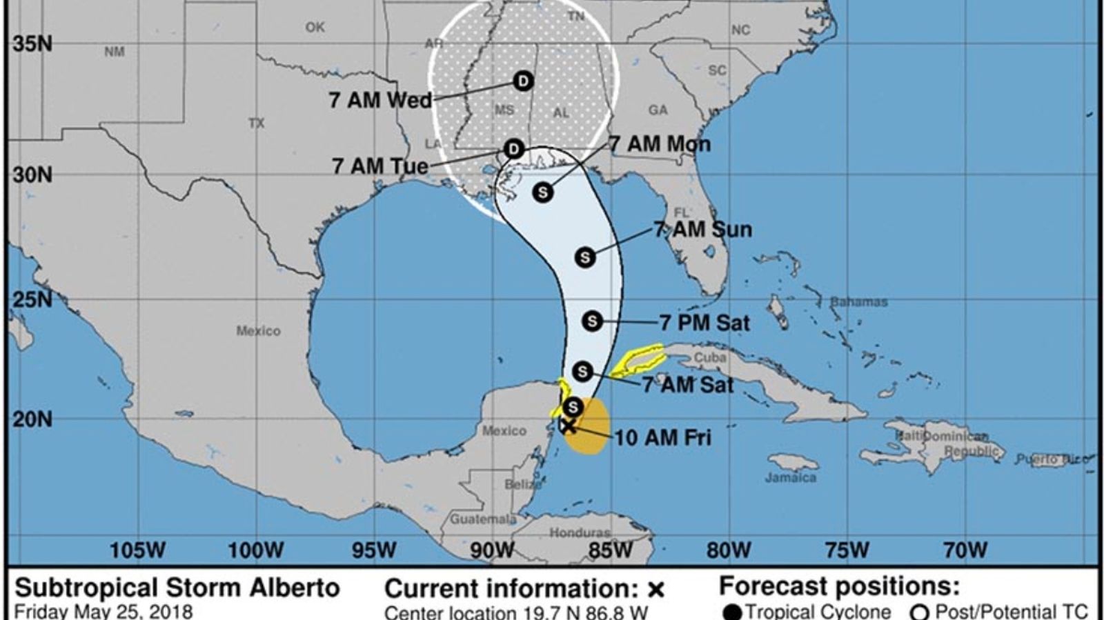Trajectòria de l'huracà Alberto, 25 de maig del 2018 / NOAA