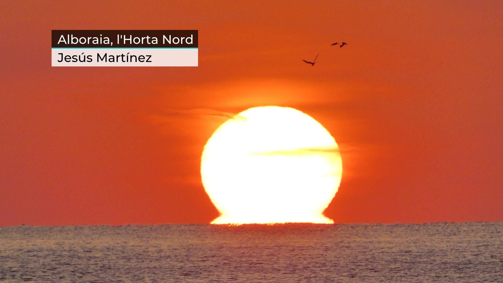 Amb unes condicions meteorològiques concretes, es produeix fenomen de miratge, és a dir, la deformació que pateix el Sol no pertany a ell, sinó que és una mateixa imatge invertida de si mateix. Açò es produeix quan hi ha una certa estabilitat atmosfèrica i queda una capa d’aire calent –de menor densitat– just sobre la superfície.