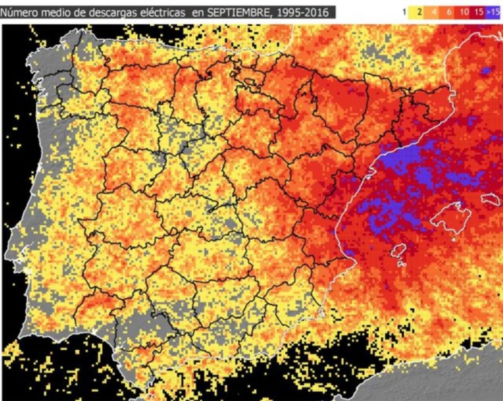 D'acord amb les dades facilitades per l'Agència Estatal de Meteorologia, setembre és un mes que es caracteritza per tindre tempestes repartides per quasi tota la Península.