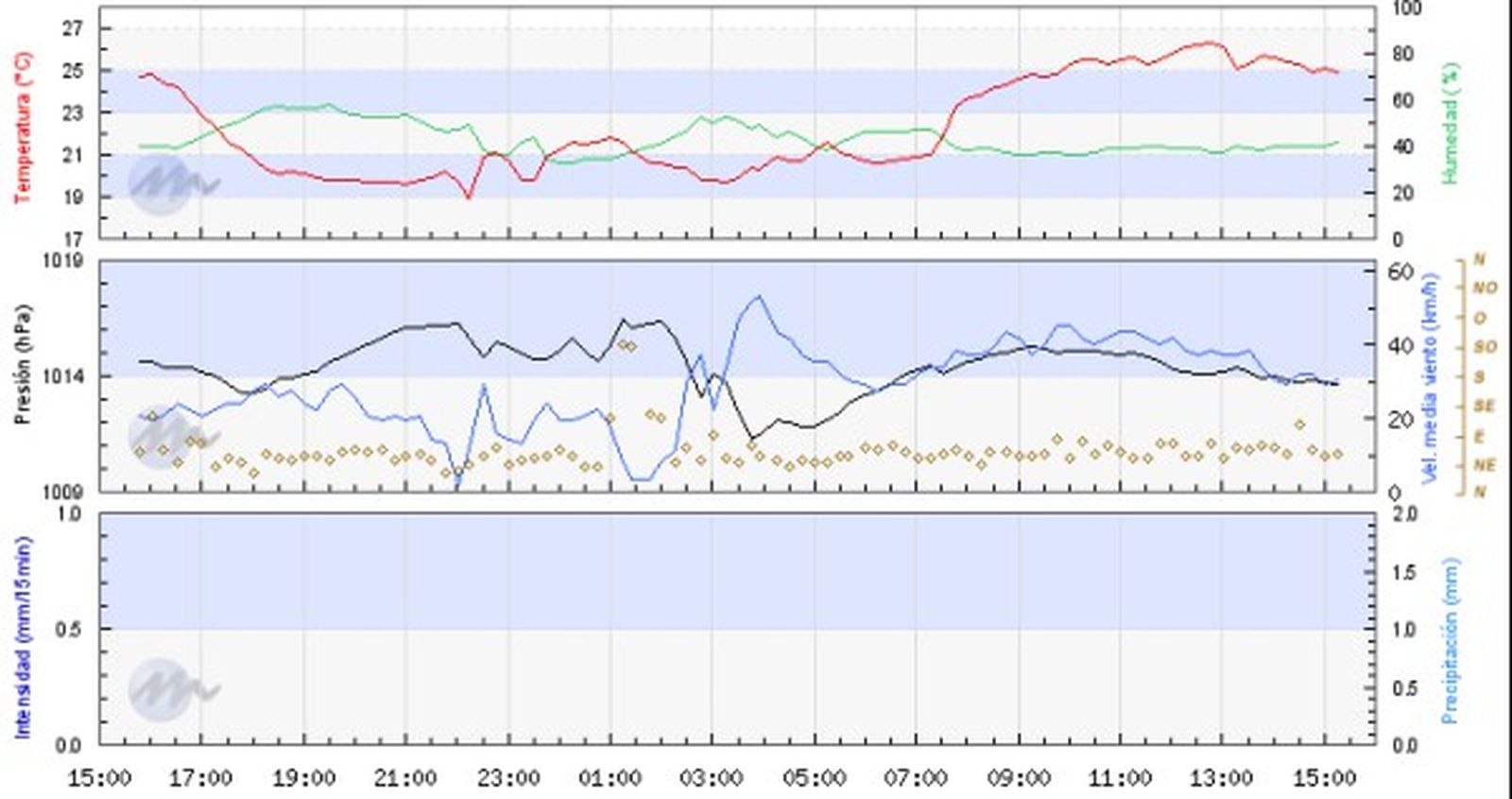 Velocitat del vent, pressió, temperatura i humitat a l'observatori Maitino d'Elx / Meteoclimatic