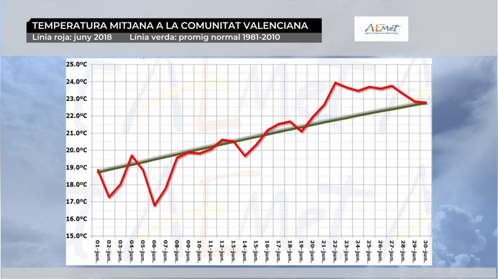 La raó d'aquest superàvit de pluja l'hem de buscar en les fortes tempestes que van afectar, a principis de mes, la zona central del territori, i en les de finals, concretament les del dia 28 de juny, que van deixar quantitats importants de pluja a l'interior de Castelló, en especial a la comarca de l'Alt Millars. En tots els casos es va tractar de pluges molt fortes en molt poc de temps, amb una intensitat torrencial i acompanyades de granís. Molta pluja, però poc aprofitable.