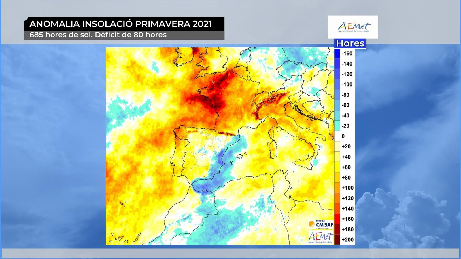La nuvolositat abundant ha sigut el factor determinant en el comportament tèrmic de la primavera. Les nits han sigut més càlides del normal, mentre que els dies han quedat més frescos. Hem vist el sol, però menys del que toca, en contrast amb el que ha passat en d'altres zones del centre i nord d'Europa.