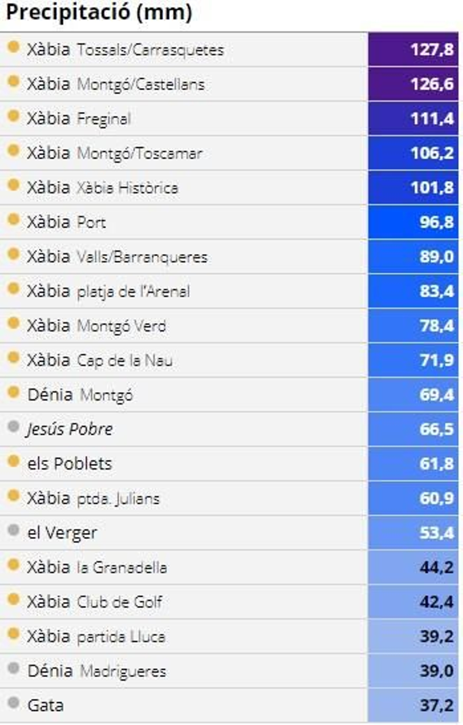 Acumulats de pluja cada deu minuts a Xàbia FONT AEMET