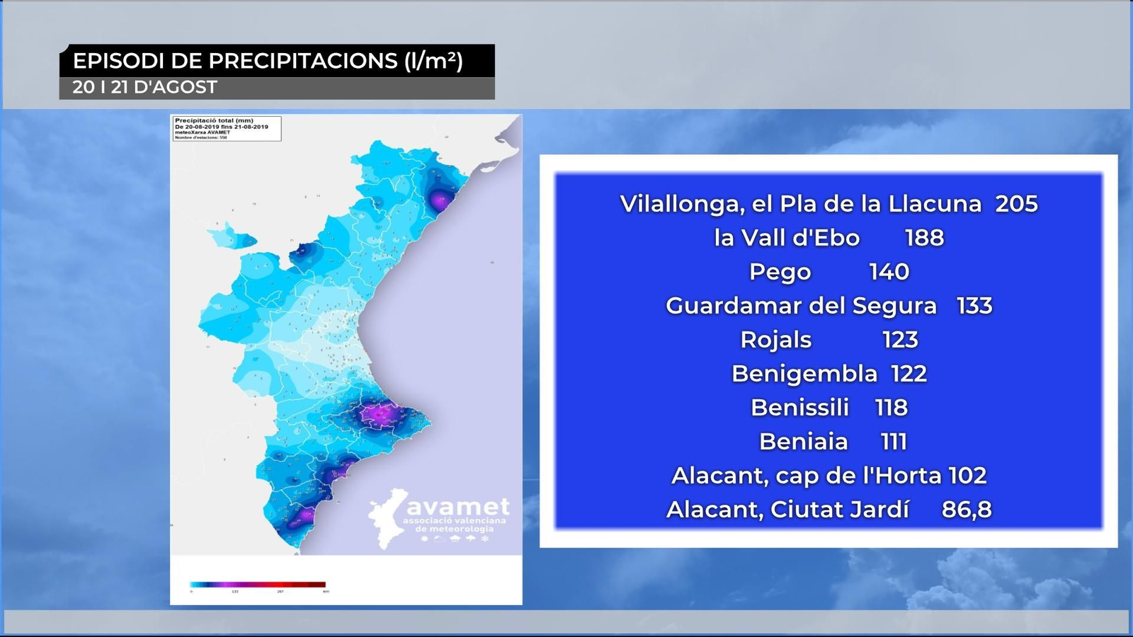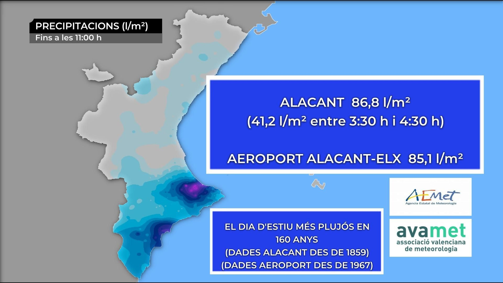 Els ruixats i les tempestes que van afectar la ciutat d'Alacant i l'aeroport d'Alacant-Elx van ser excepcionals per la quantitat de precipitació en 24 hores en un dia d'estiu.