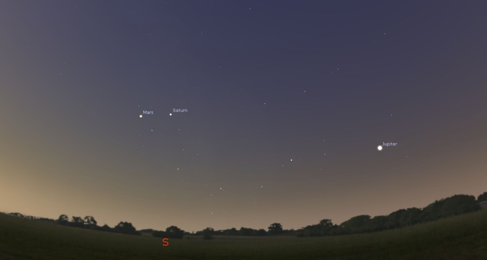 De matí, abans de l'eixida del sol, tenim un ball de planetes. Cap al sud, al voltant de les 7.00 h, hi distingim Júpiter com un cos celest blanc que llueix amb força.
