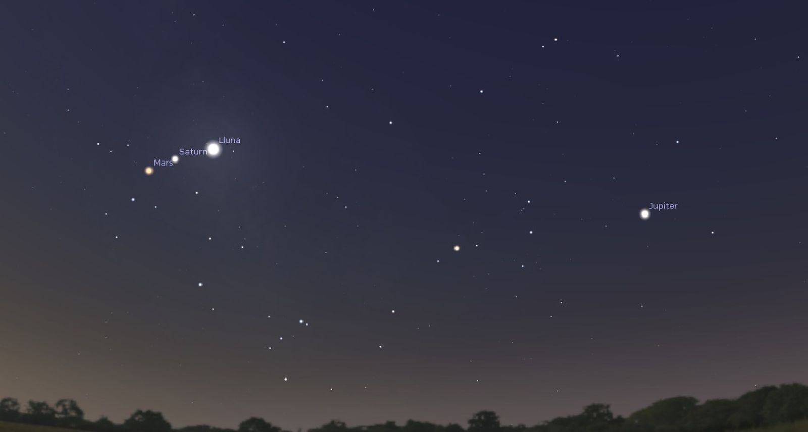 La primera part del mes, després de la posta de sol, les constel·lacions que dominen el cel són Orió, Gèminis, Taure i Lleó, entre d'altres. A més, podrem veure a simple vista l'Estació Espacial Internacional.