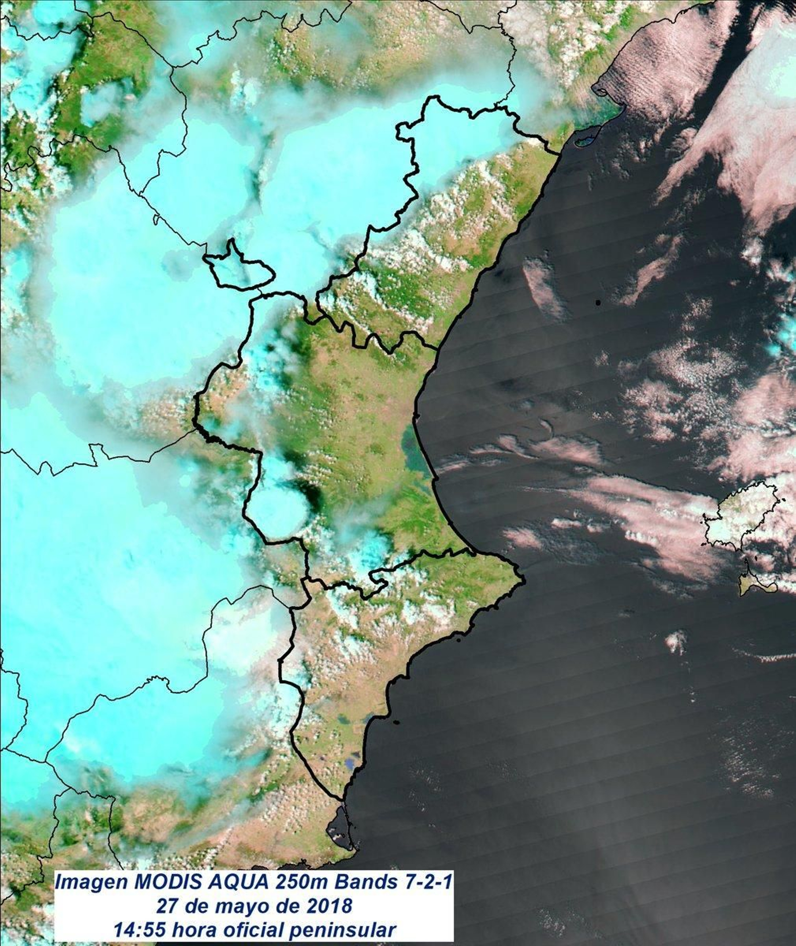 Malauradament, algunes d'aquestes tempestes anaren acompanyades de fortes pedregades, com les que van caure a Aiora i a Utiel, que han causat molts danys a l'agricultura. En la següent imatge del satèl·lit Aqua podem veure el núvol que va provocar la forta tempesta a Aiora. Es tractava d'una estructura amb un gran desenvolupament vertical, que arribà fins a la tropopausa, a uns 11 quilòmetres.